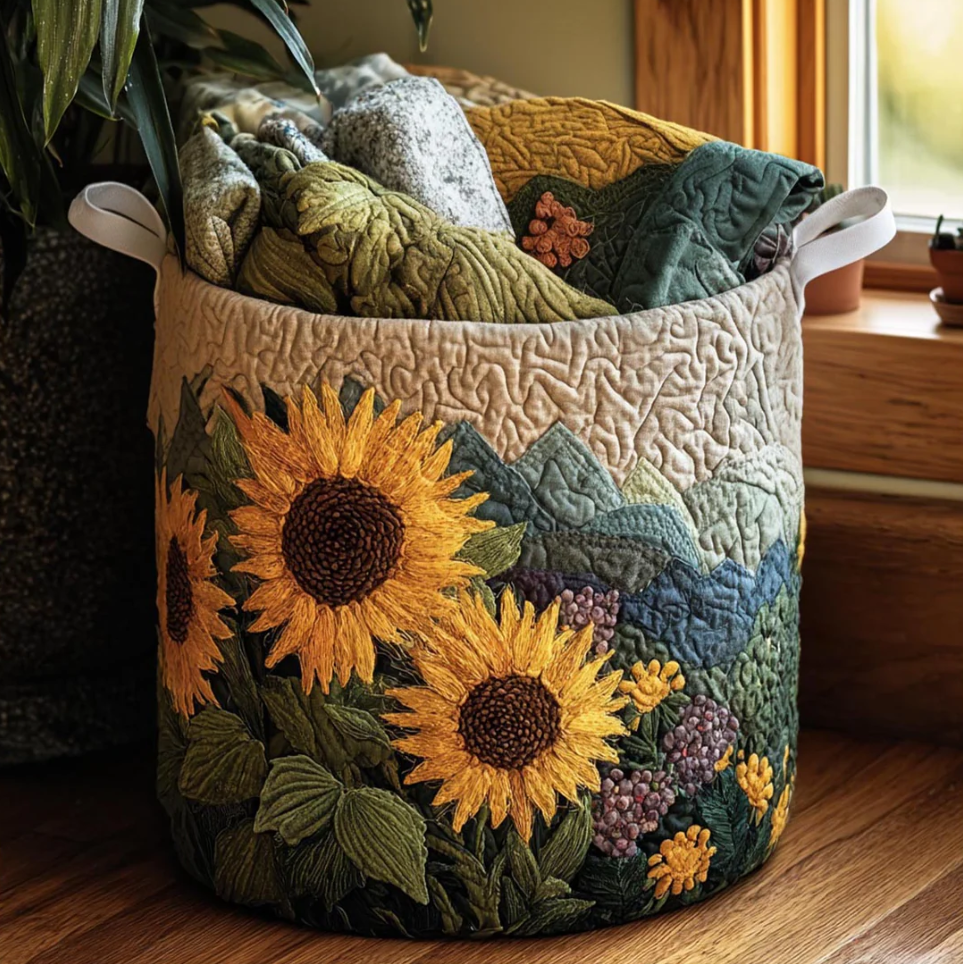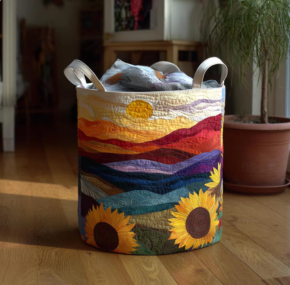 Vivid Sunflower Floral Pattern Quilted Laundry Basket Eco-Friendly Machine Washable Storage Bin for Home Farmhouse Living Room Decor | Sunflower