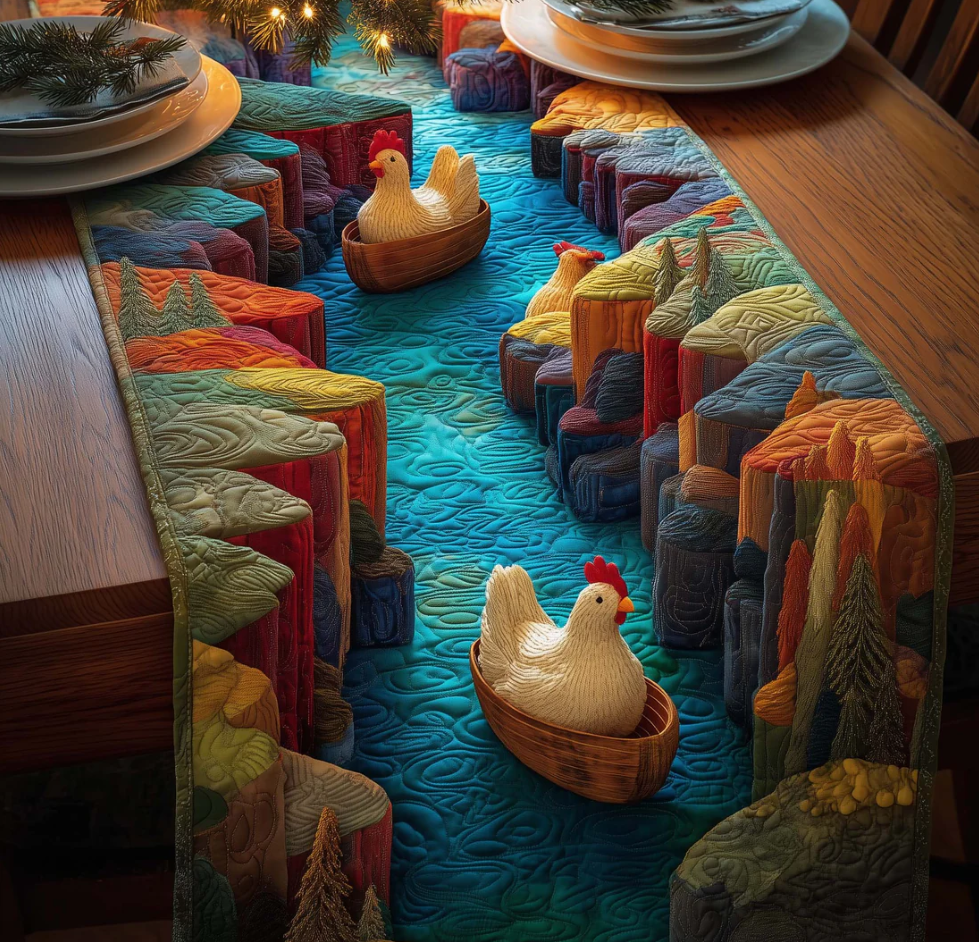 River Chickens Quilted Table Runner Colorful River Chicken Pattern Dining Table Flag for Home Decor | Chicken