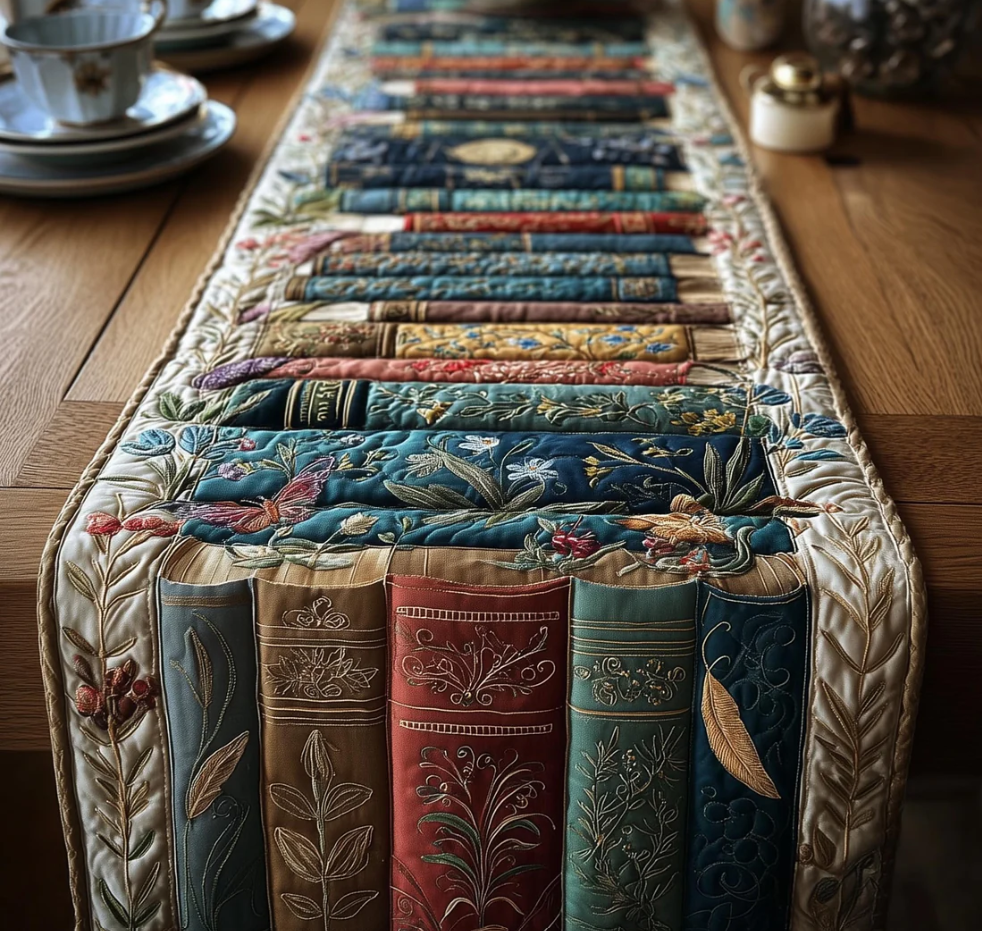Bookish Quilted Table Runner Vintage Book Stack Pattern Dining Table Flag for Home Decor | book