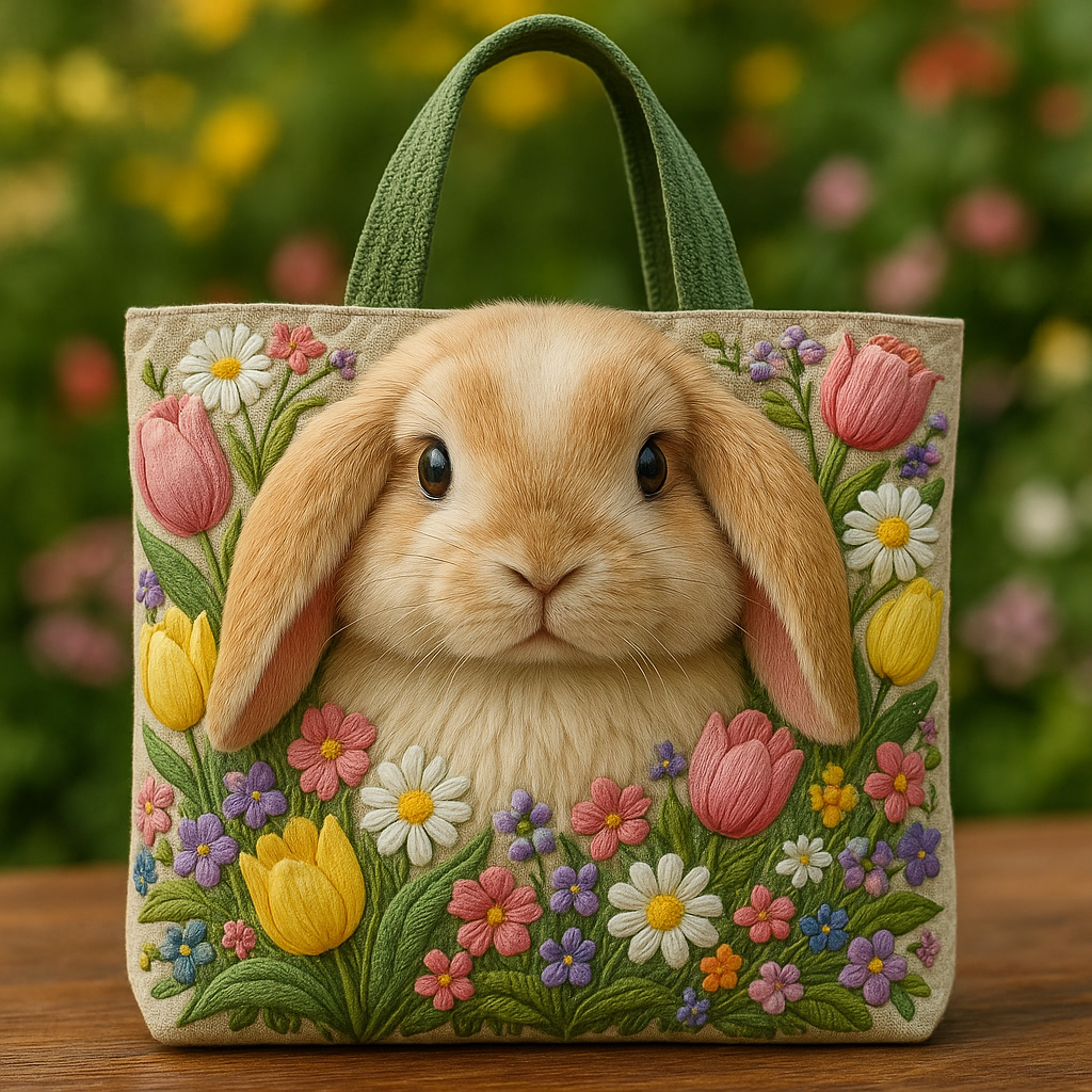 Floral Bunny Quilted Tote Bag ⚡ Spring-Inspired Handcrafted Style