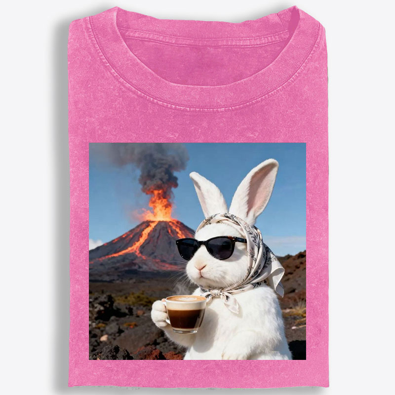 Volcano Coffee Bunny Retro Washed T-Shirt | 100% Cotton | Streetwear Essential