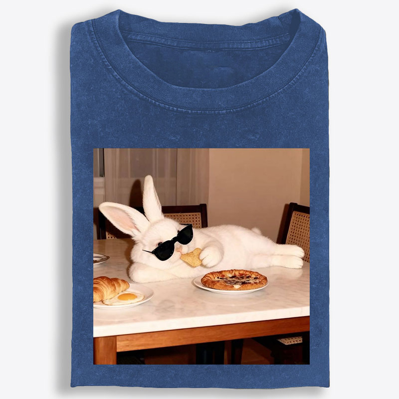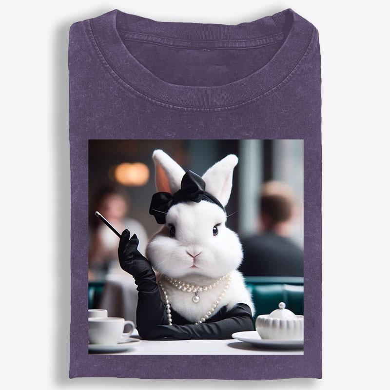 Rabbit Drinking Tea Uyghur Style Retro Washed T-Shirt | 100% Cotton | Streetwear Essential
