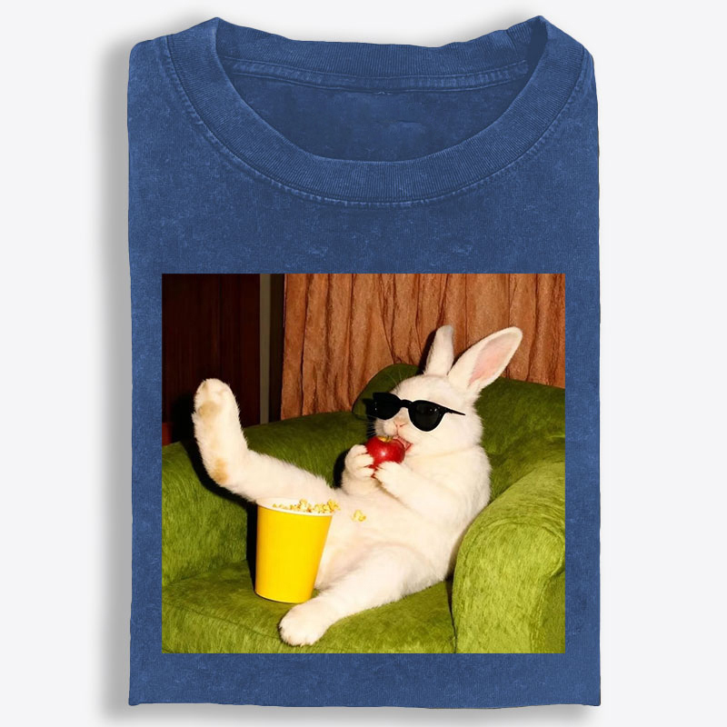 Couch Potato Bunny Retro Washed T-Shirt | 100% Cotton | Streetwear Essential