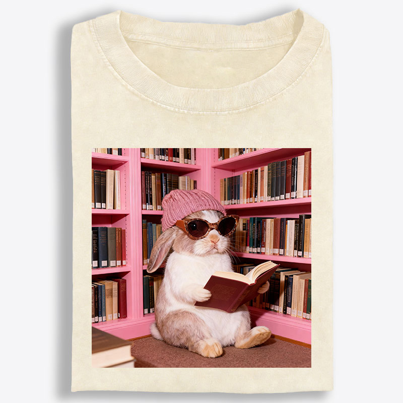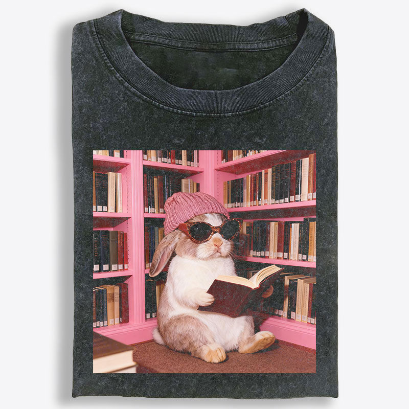 Bunny Bookish Rabbit Retro Washed T-Shirt | 100% Cotton | Streetwear Essential
