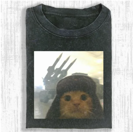 Rocket Launcher Cat Oversized Washed Vintage Meme T-Shirt