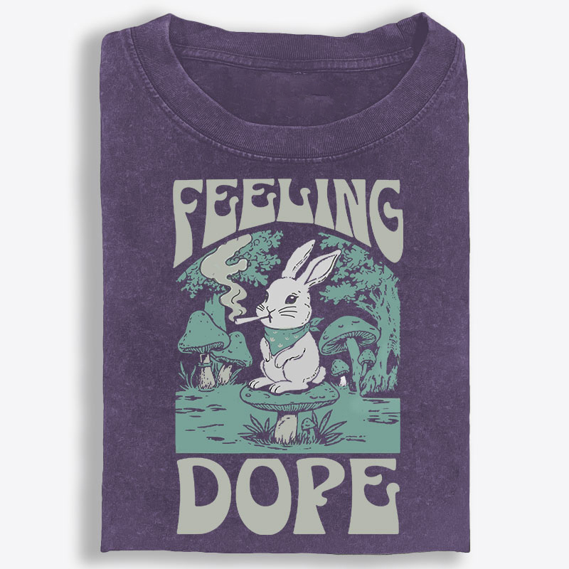 Bunny Feeling Dope Rabbit Retro Washed T-Shirt | 100% Cotton | Streetwear Essential