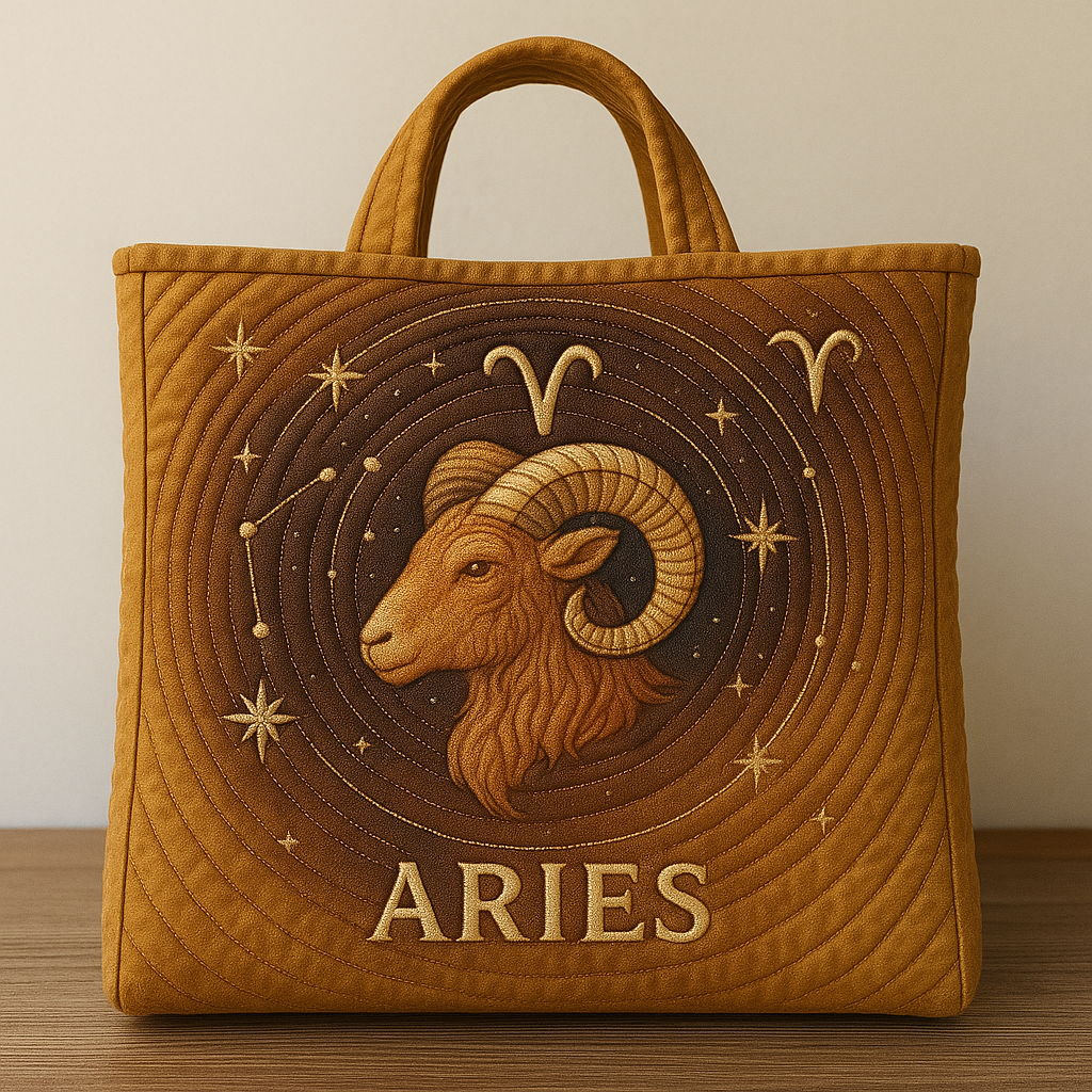 Aries Zodiac Quilted Tote Bag – The Fire of Courage