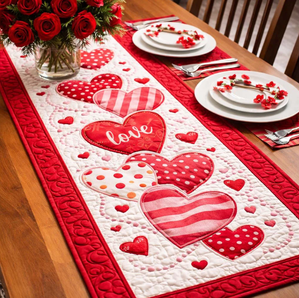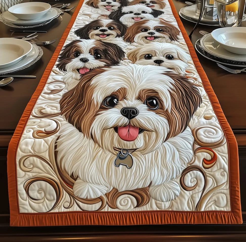 Artistic Quilted Table Runner with Peacock Gnome Wolf Hummingbird Themed 3D Embossed Pattern Soft Breathable Fabric Decor Mat for Dining Room & Kitchen
