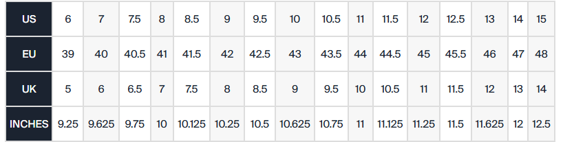• Runs a full size small. Choose a size up from your true sneaker size for a comfortable, glove-like fit. These will give with time and mold to the shape of your foot. (ex. If you usually wear size 9, order size 10 in the Baller One)