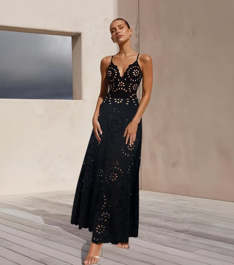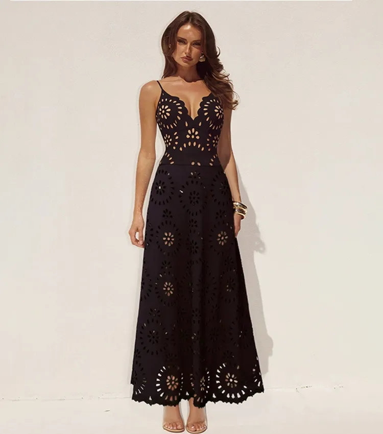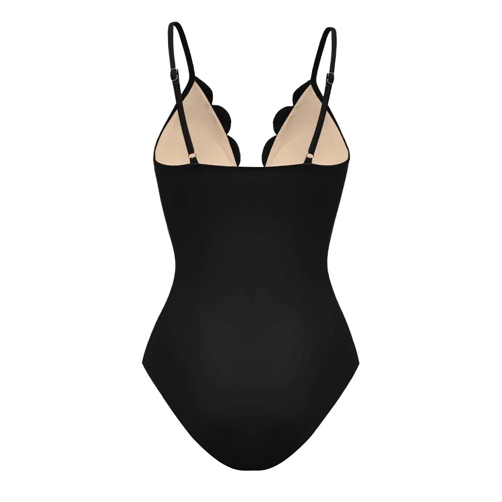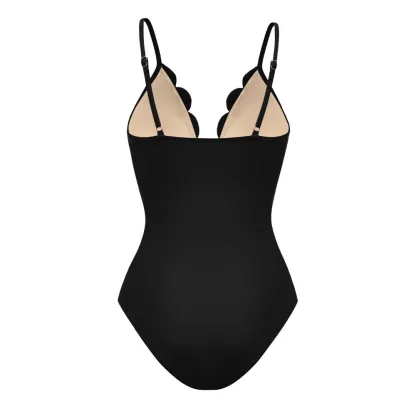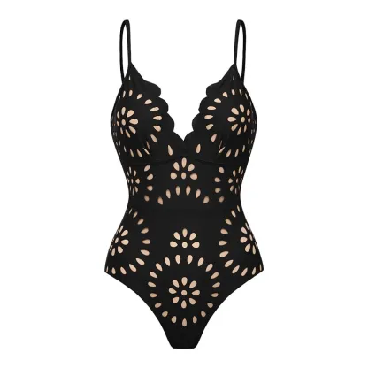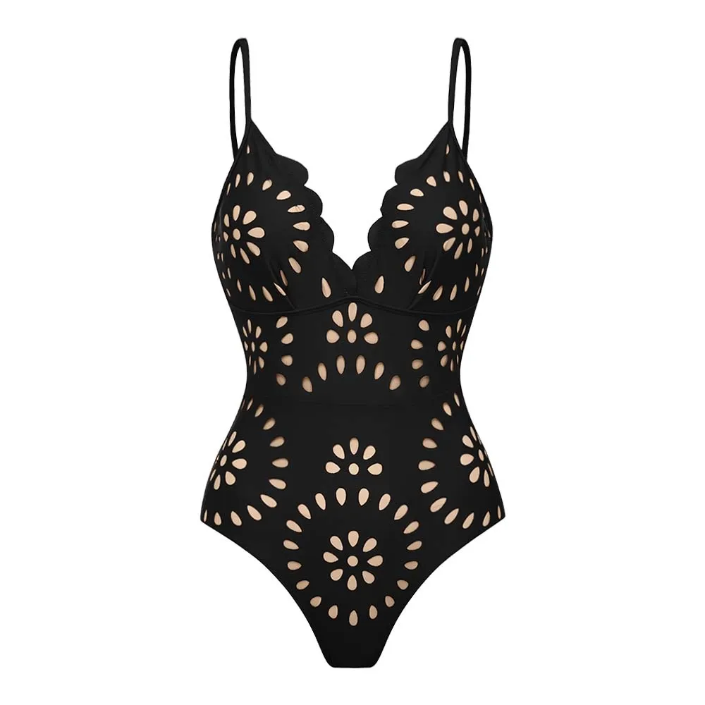 Black Laser Cutting Flower Hollow One Piece Swimsuit