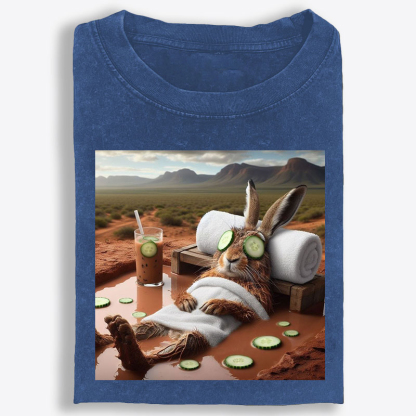 A soft, relaxed-fit vintage washed tee featuring a funny spa-day bunny graphic—perfect for adding playful self-care vibes to your everyday style.