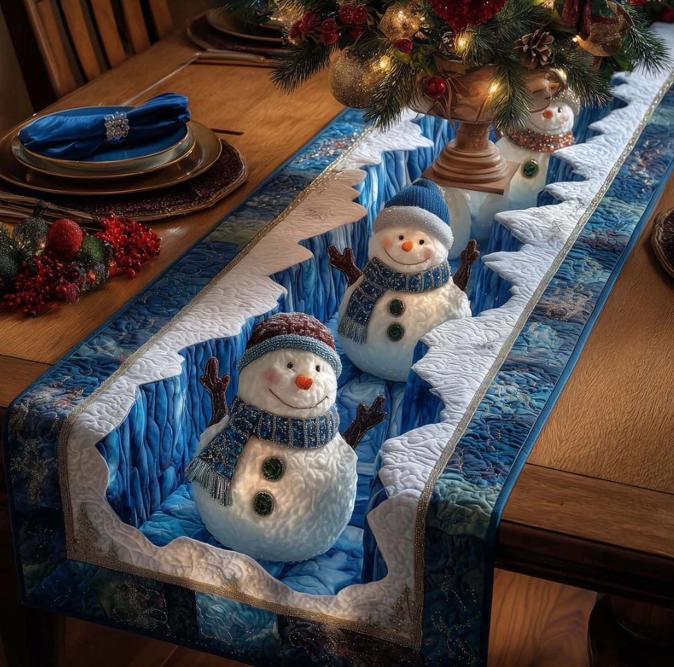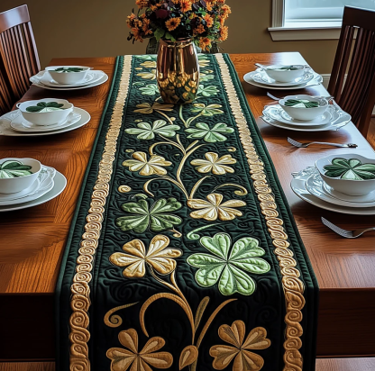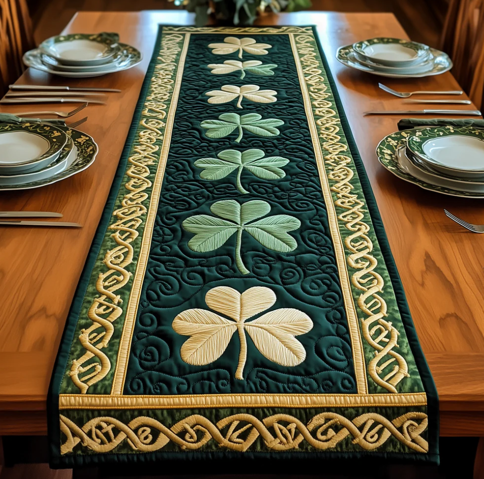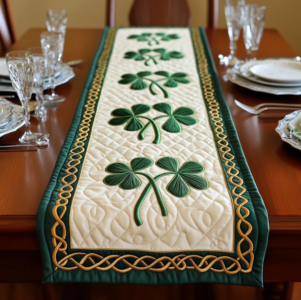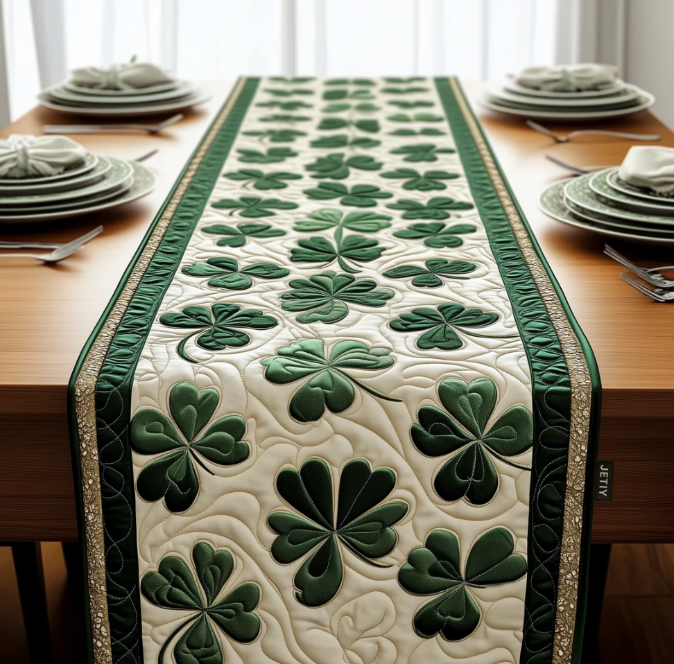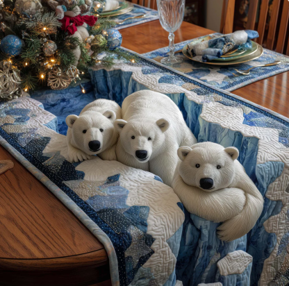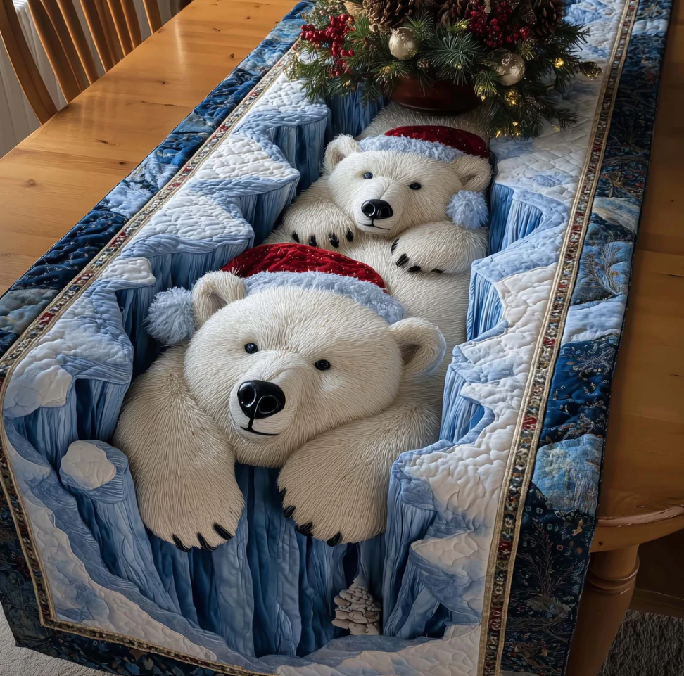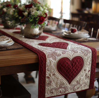 Exquisite Quilted Table Runner with Heart Shamrock Polar Animal Themed 3D Pattern Soft Durable Fabric Decorative Mat for Dining Table Decoration