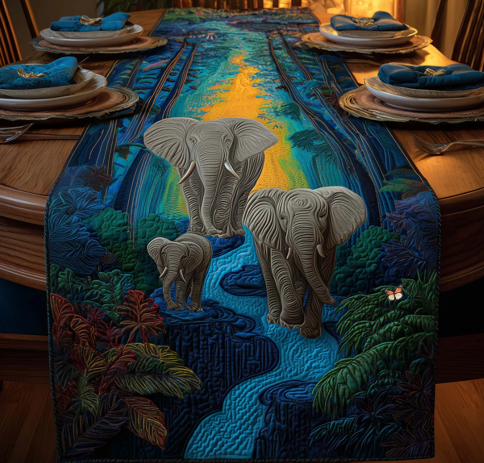 Forest Giant Quilted Table Runner Elephant Family Pattern Dining Table Flag for Home Decor | Elephant