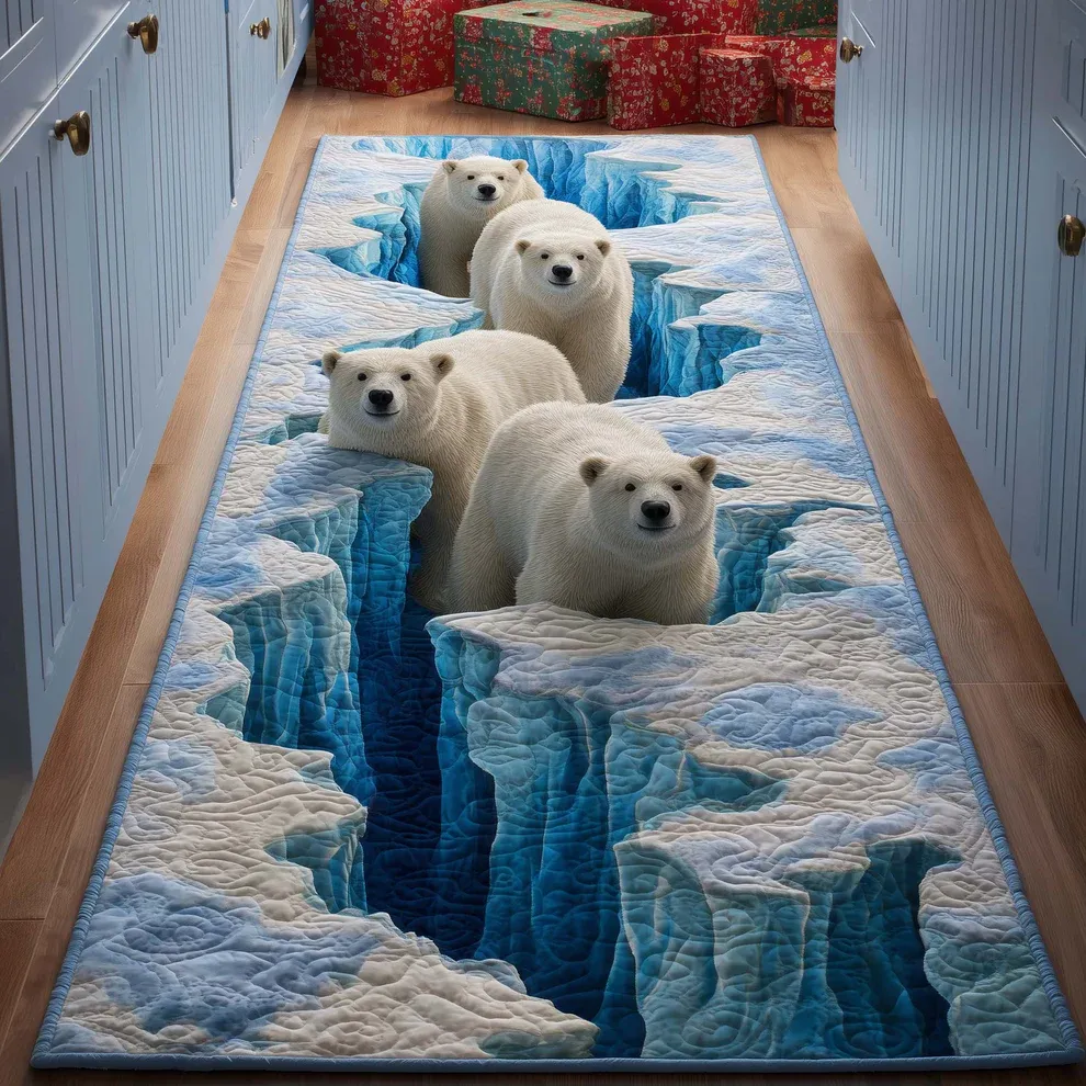 Four Glacier Bears Quilted Runner Rug | Bear