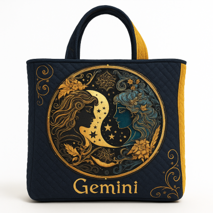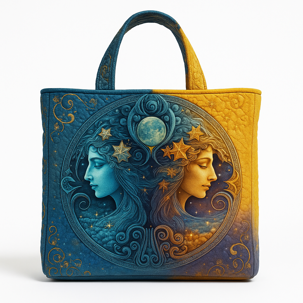 Gemini Zodiac Quilted Tote Bag – The Dual Spirit of Air