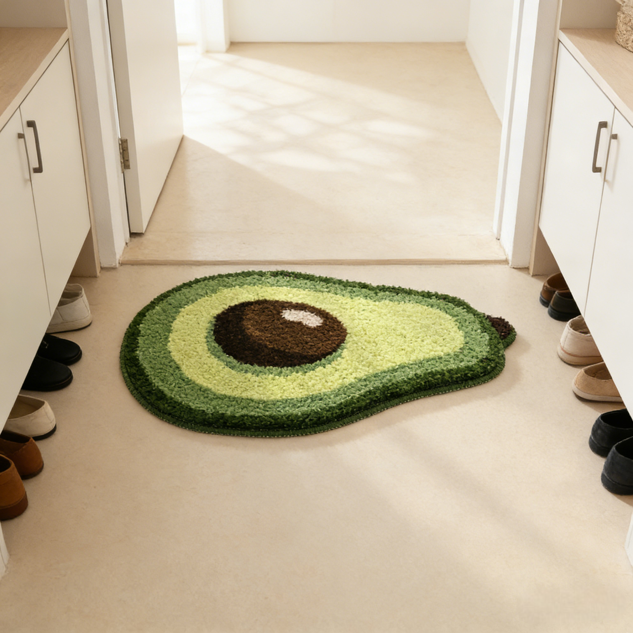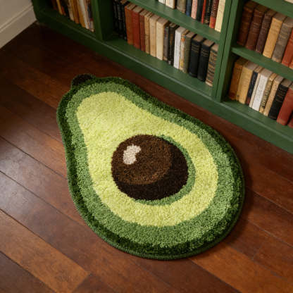 Add a playful yet modern accent to your space with the Avocado Halves Flocked Rug. Inspired by the clean, organic beauty of a freshly sliced avocado, this rug features layered green tones, soft avocado flesh details, and a rich brown pit centerpiece for a fun and eye-catching look. Its fresh botanical design instantly brightens your bathroom while adding a calm, natural feel to your décor.