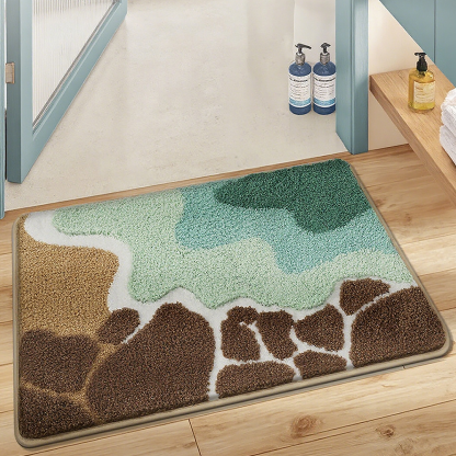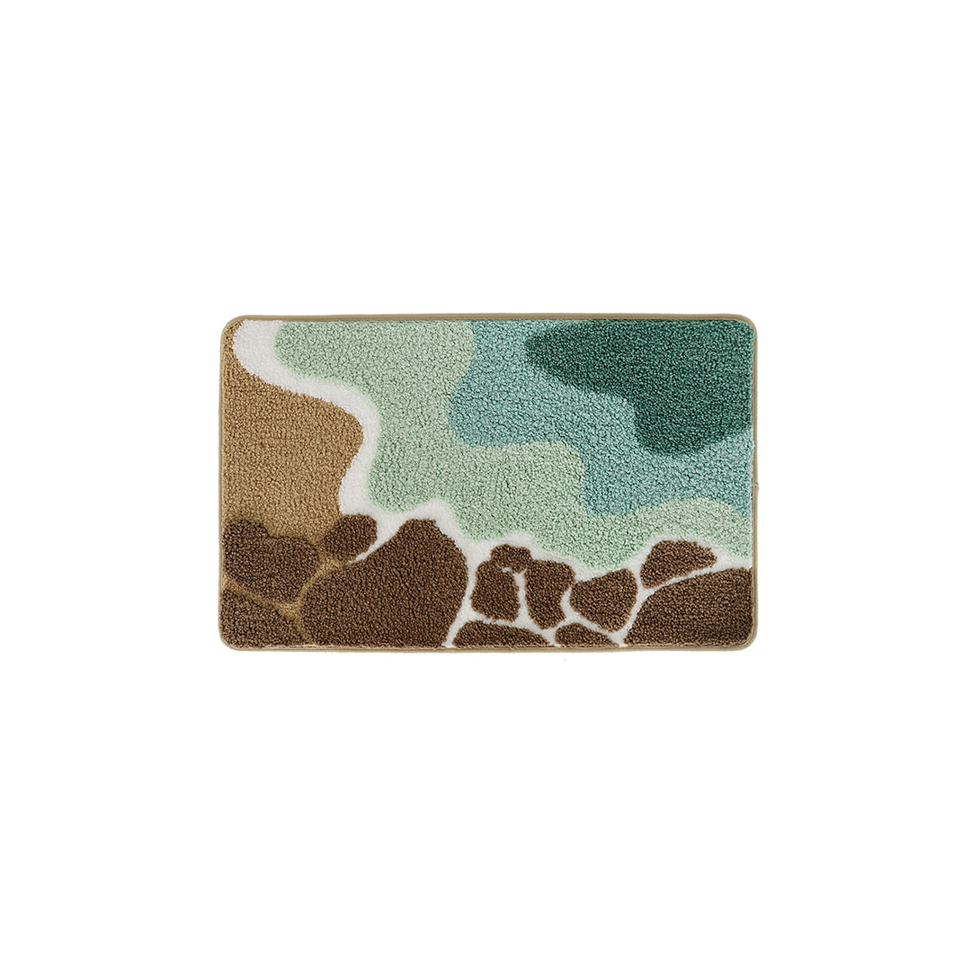 Inspired by the natural layers of a coastal shoreline, the Coastal Reef Flocked Rug transforms your bathroom into a calm, beach-inspired retreat. Rich brown reef-like textures, soft sandy beige tones, foamy white waves, and refreshing aqua-green hues come together in a beautifully layered design that captures the peaceful rhythm of the sea.