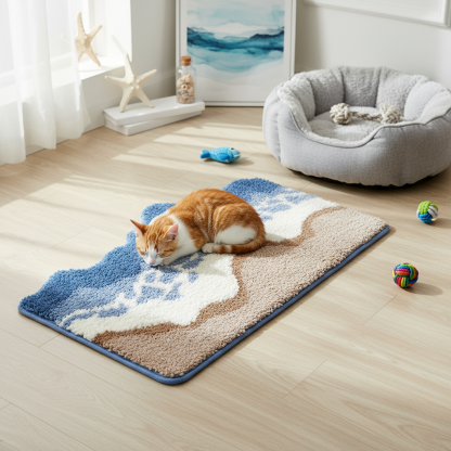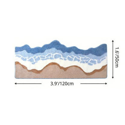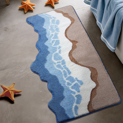 Flowing layers of crisp white and ocean blues create the illusion of rolling surf, while the smooth beige base mimics sunlit coastal sand. The balanced color transition brings both energy and tranquility — like standing at the edge of the sea.