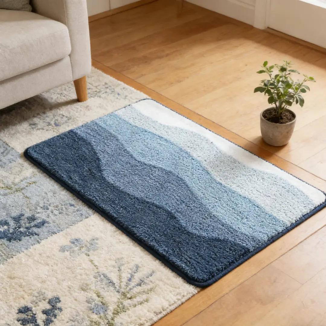 Inspired by the serene meeting point of sky and sea, the Ocean Horizon Flocked Rug features layered gradient blues that echo the peaceful beauty of the ocean horizon. Its soothing tones and clean design bring a fresh, relaxing atmosphere to your bathroom, making every step feel like a quiet moment by the shore.
