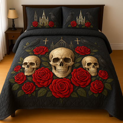Marivn® Gothic Cathedral & Red Rose Skull 3-Piece Quilted Bedding Set