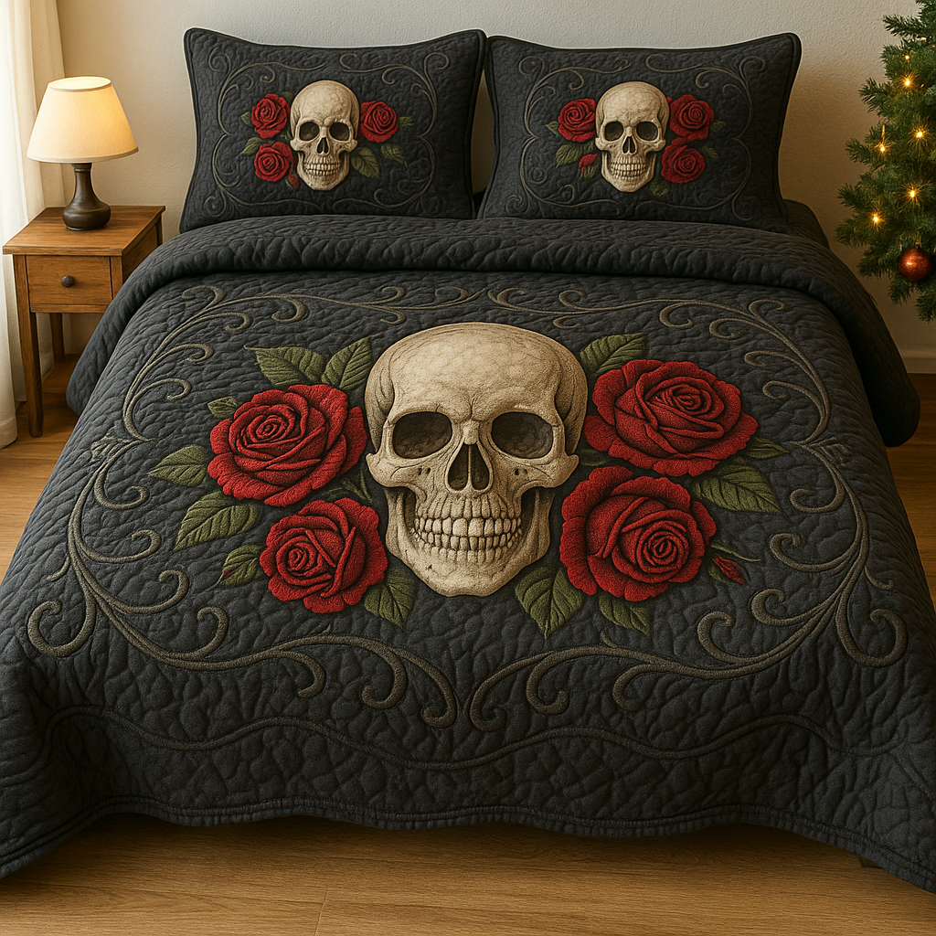 Marivn® Gothic Crimson Rose Skull 3-Piece Quilted Bedding Set