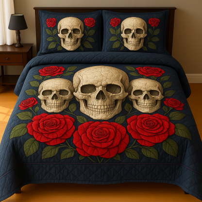 Marivn® Gothic Crimson Skull Garden 3-Piece Quilted Bedding Set
