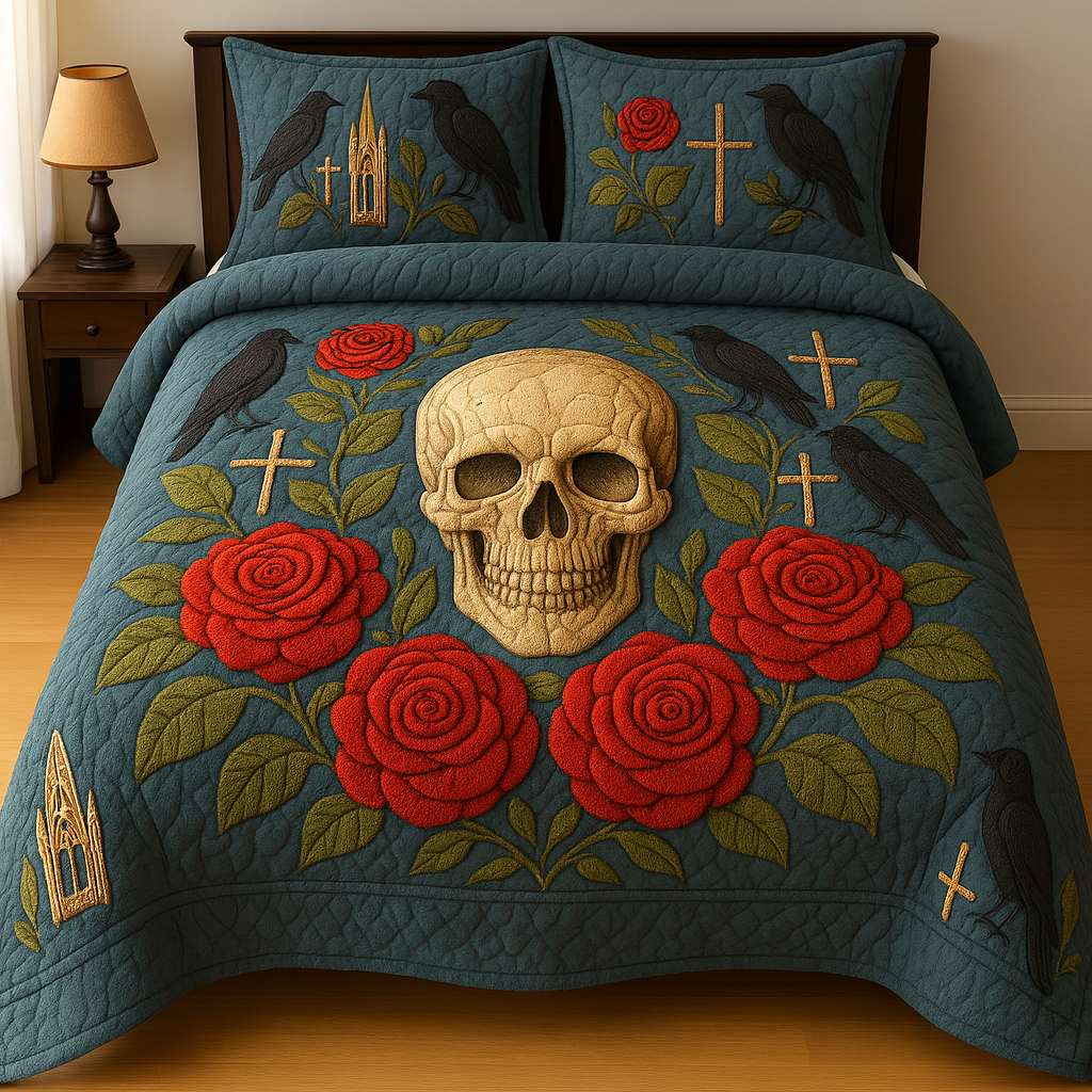 Marivn® Gothic Raven & Crimson Rose 3-Piece Quilted Bedding Set