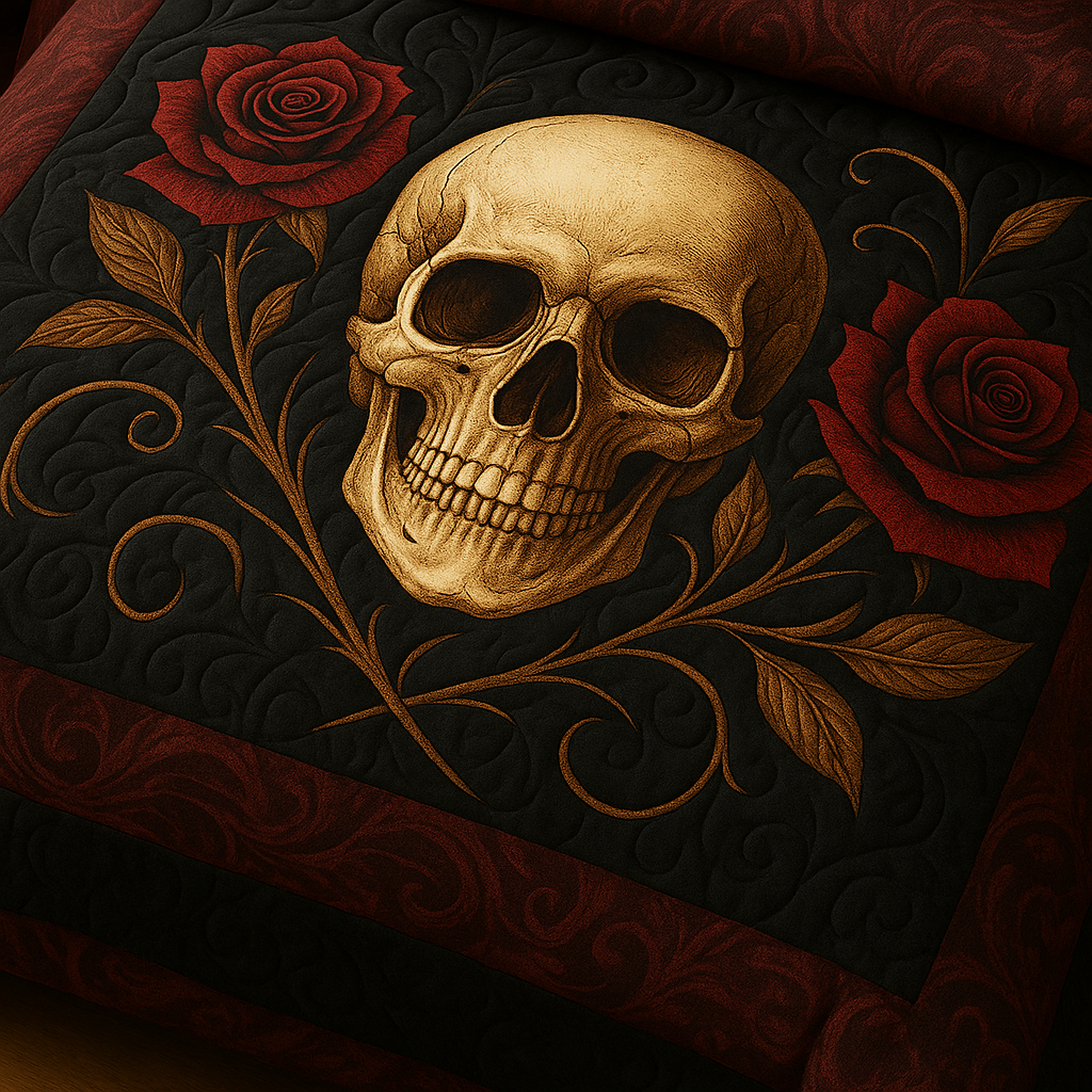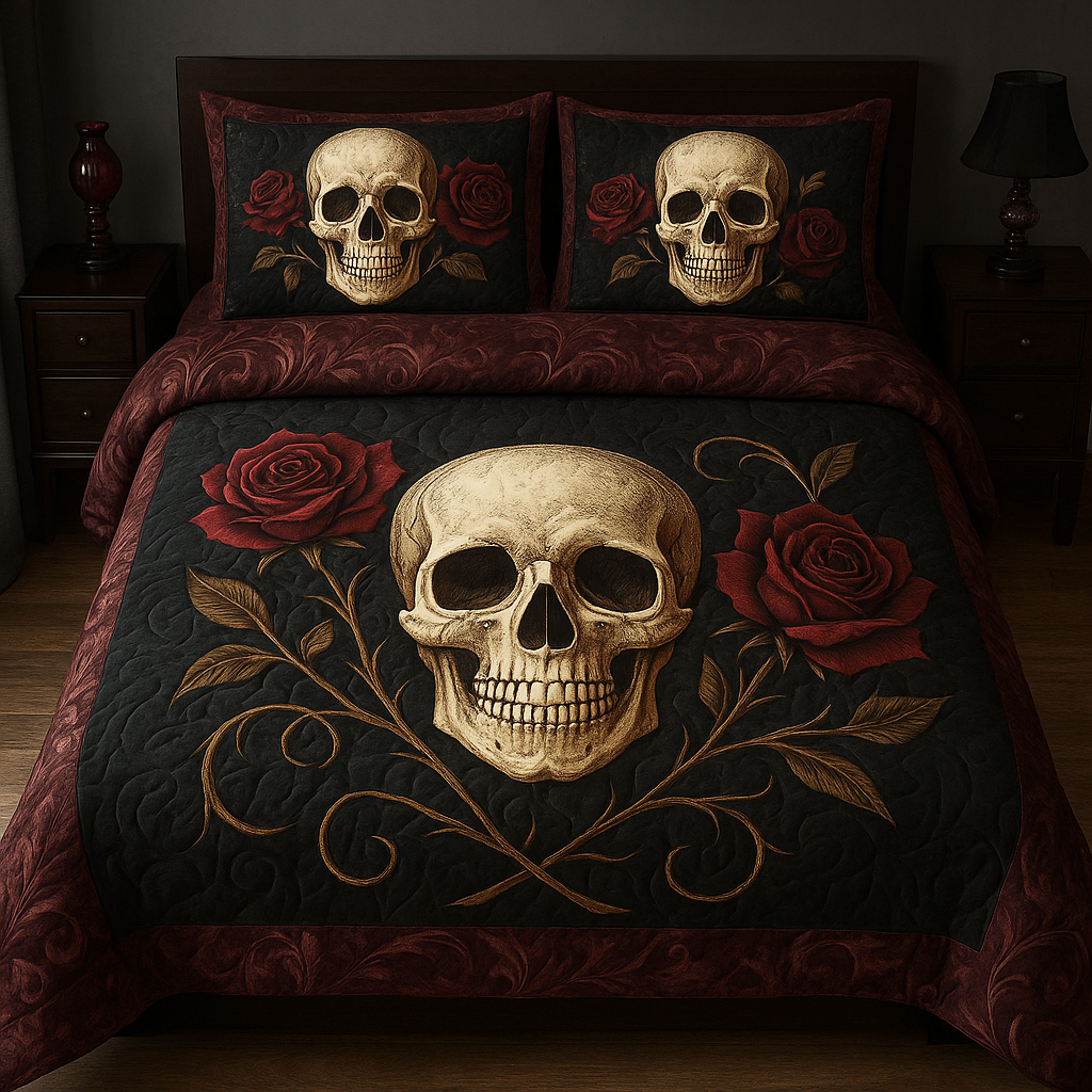 Marivn® Gothic Skull & Crimson Roses 3-Piece Bedding Set | Nightshade Red Edition