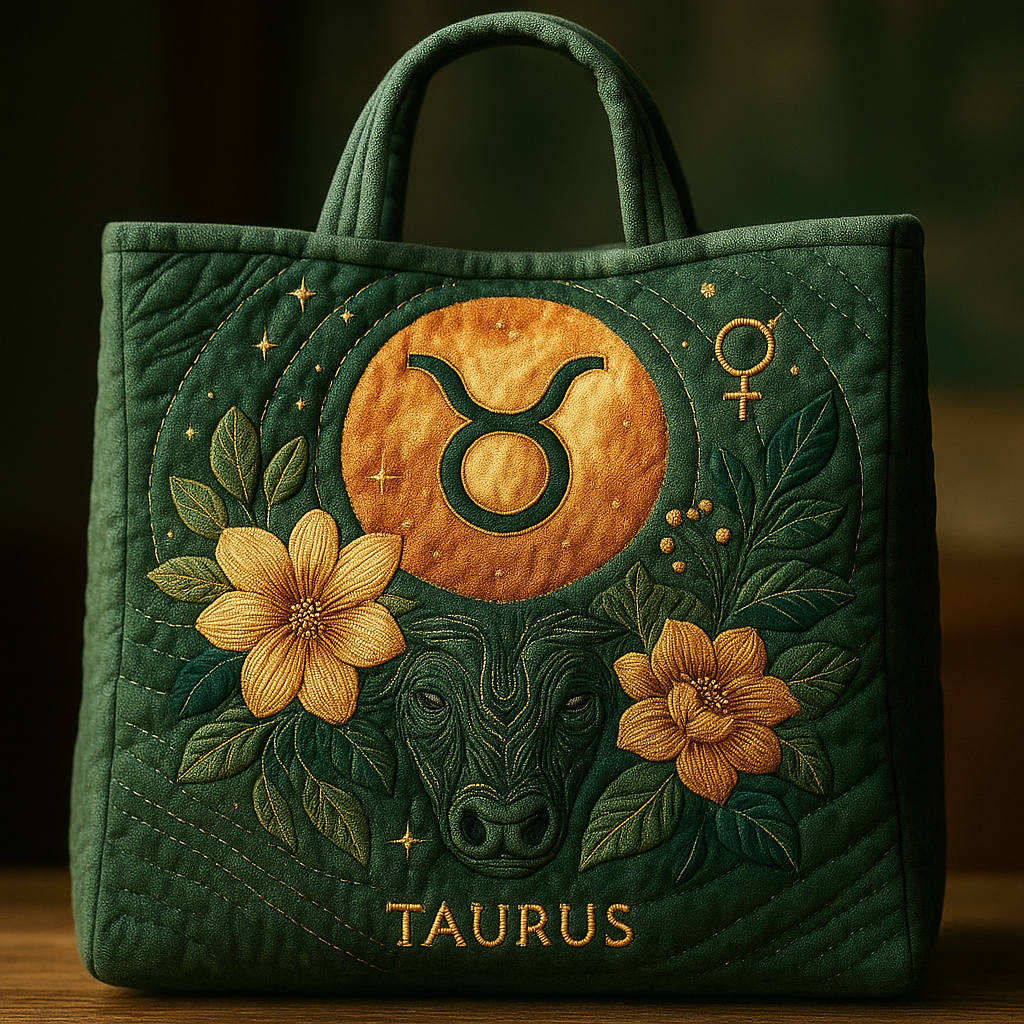Taurus Zodiac Quilted Tote Bag – Grounded in Elegance