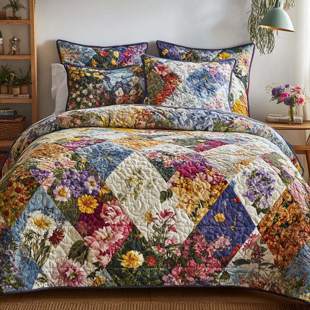 Vintage Garden Patchwork Floral Quilted Bedding — Vintage Bloom 3-Piece Quilted Bedding Set
