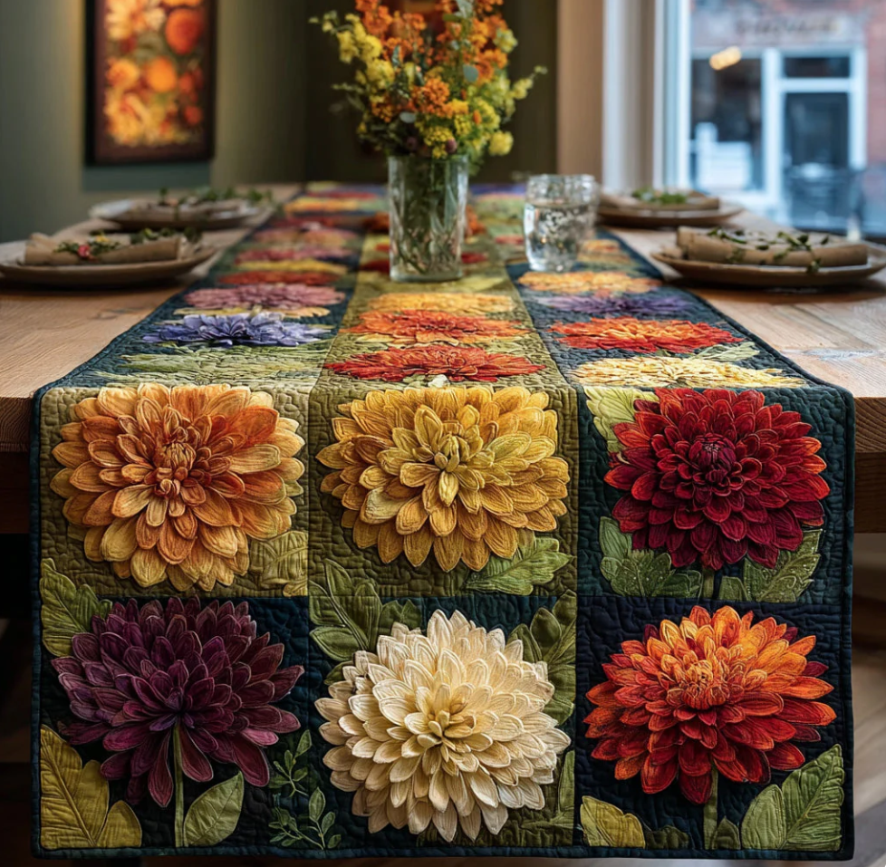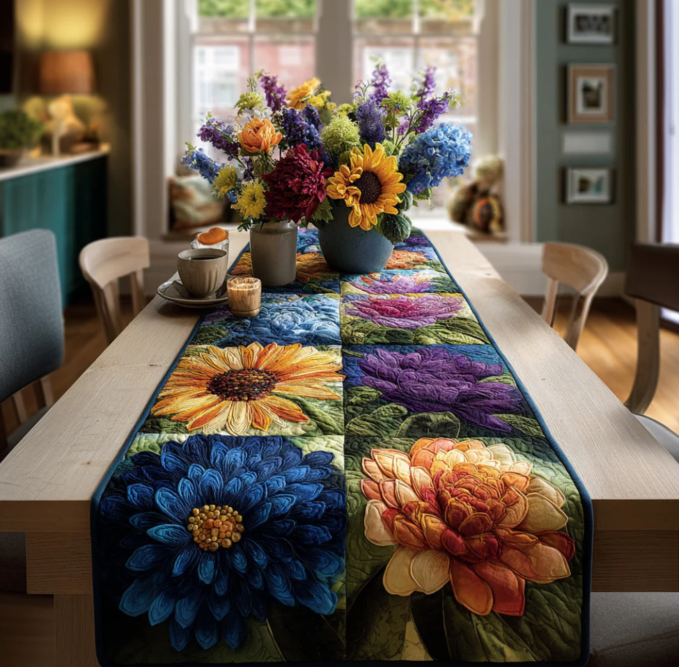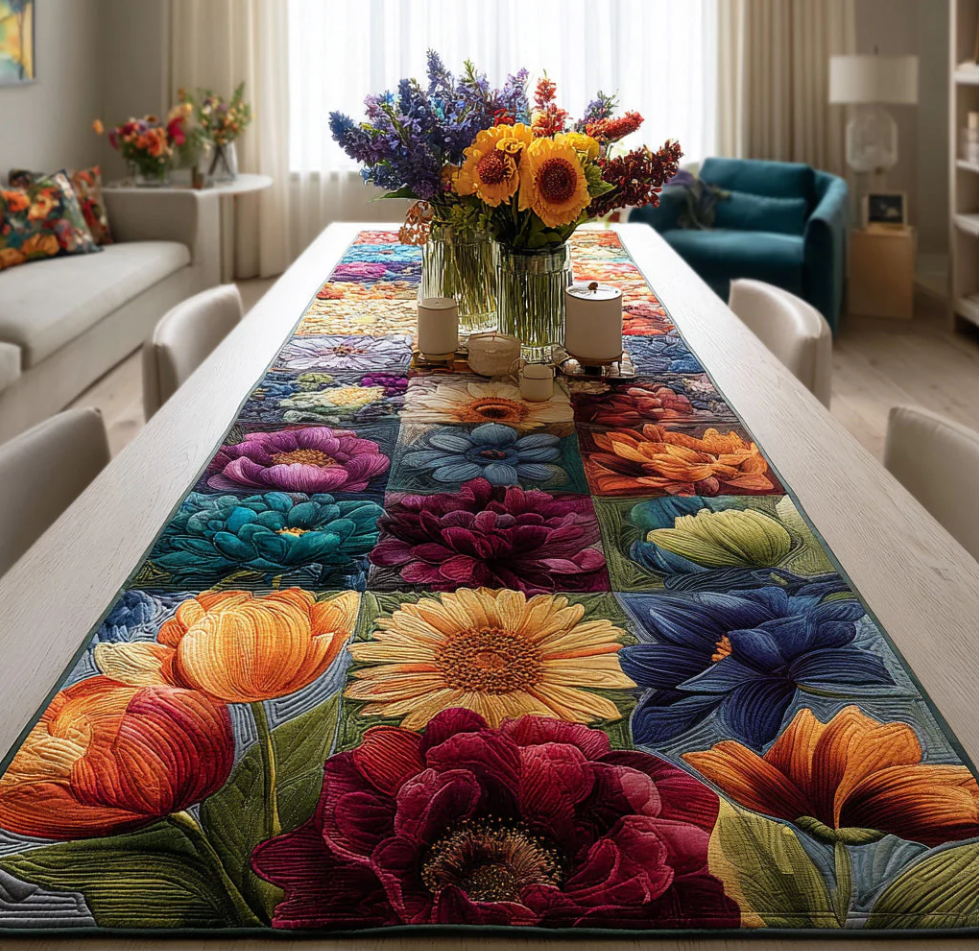 Vivid Floral Patchwork Pattern Handcrafted Eco-Friendly Quilted Table Runner | Flower